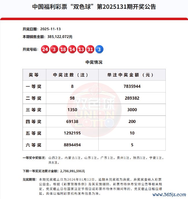 北京时辰2025年11月13日,福彩双色球第25131期开奖,以下是详备开奖经由: